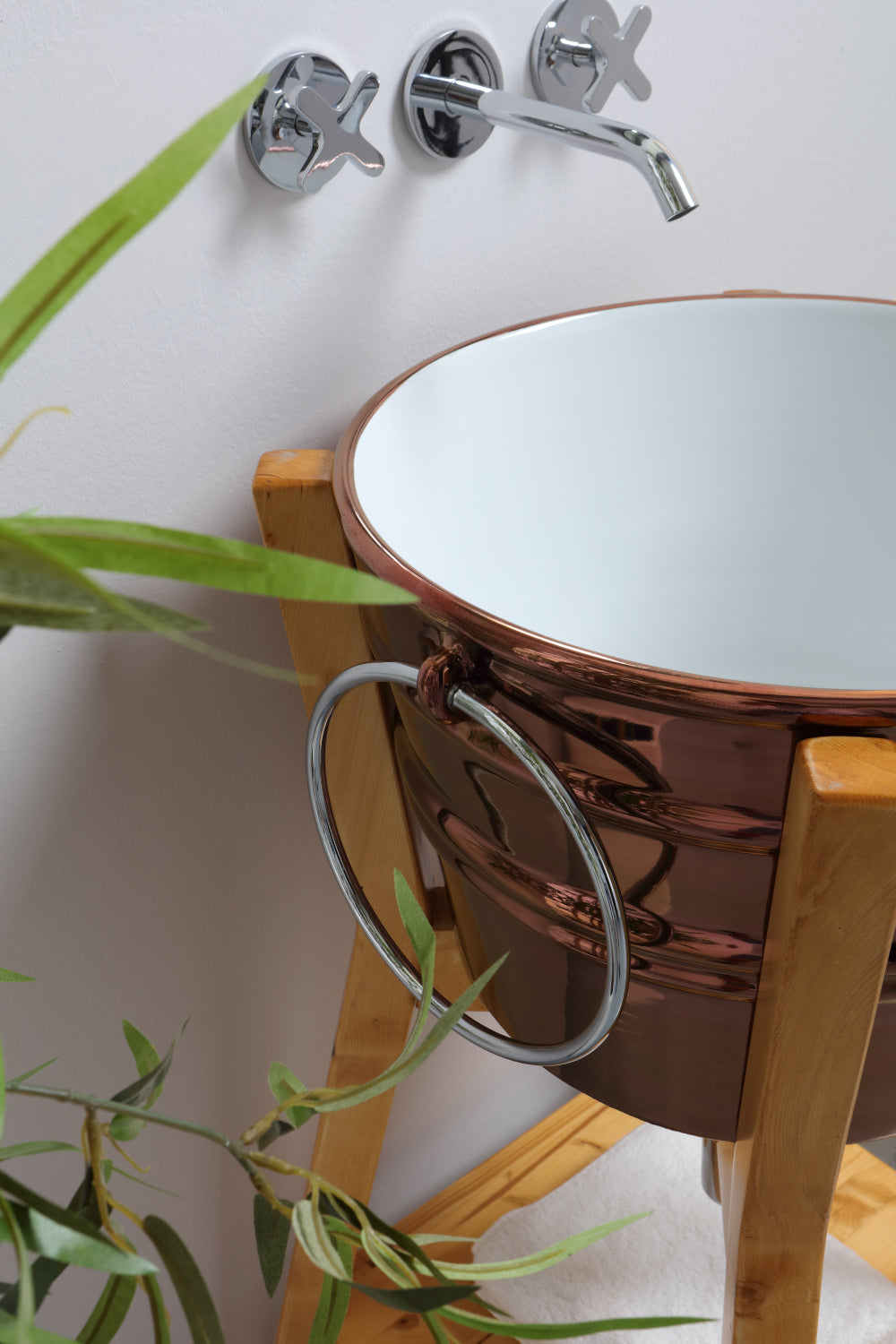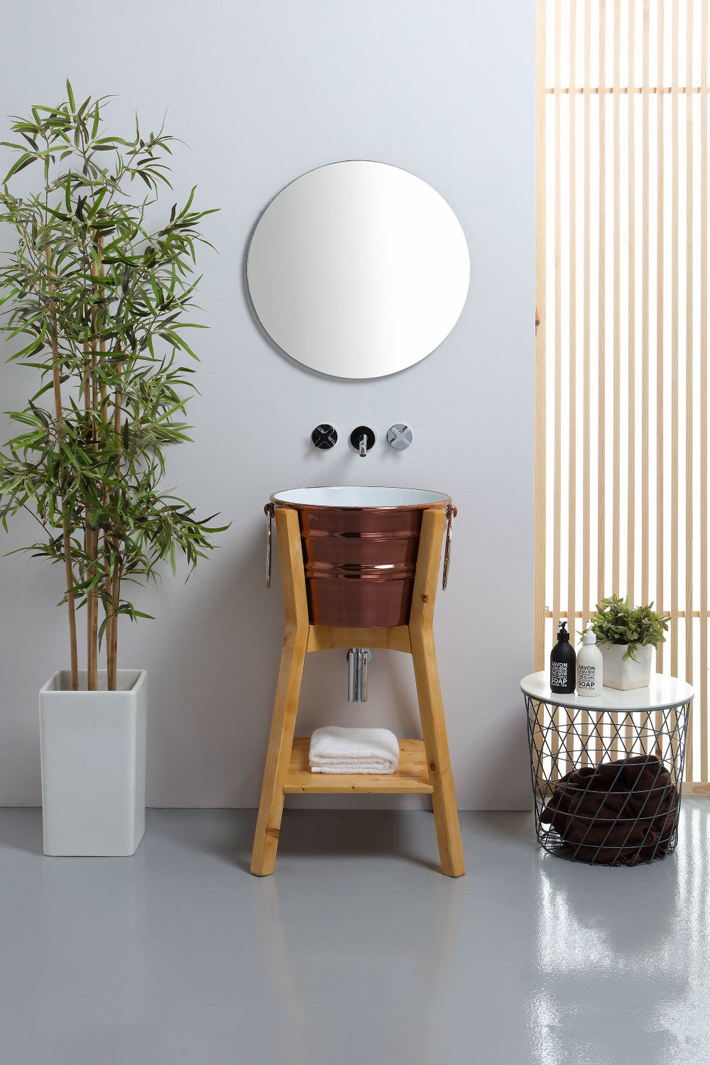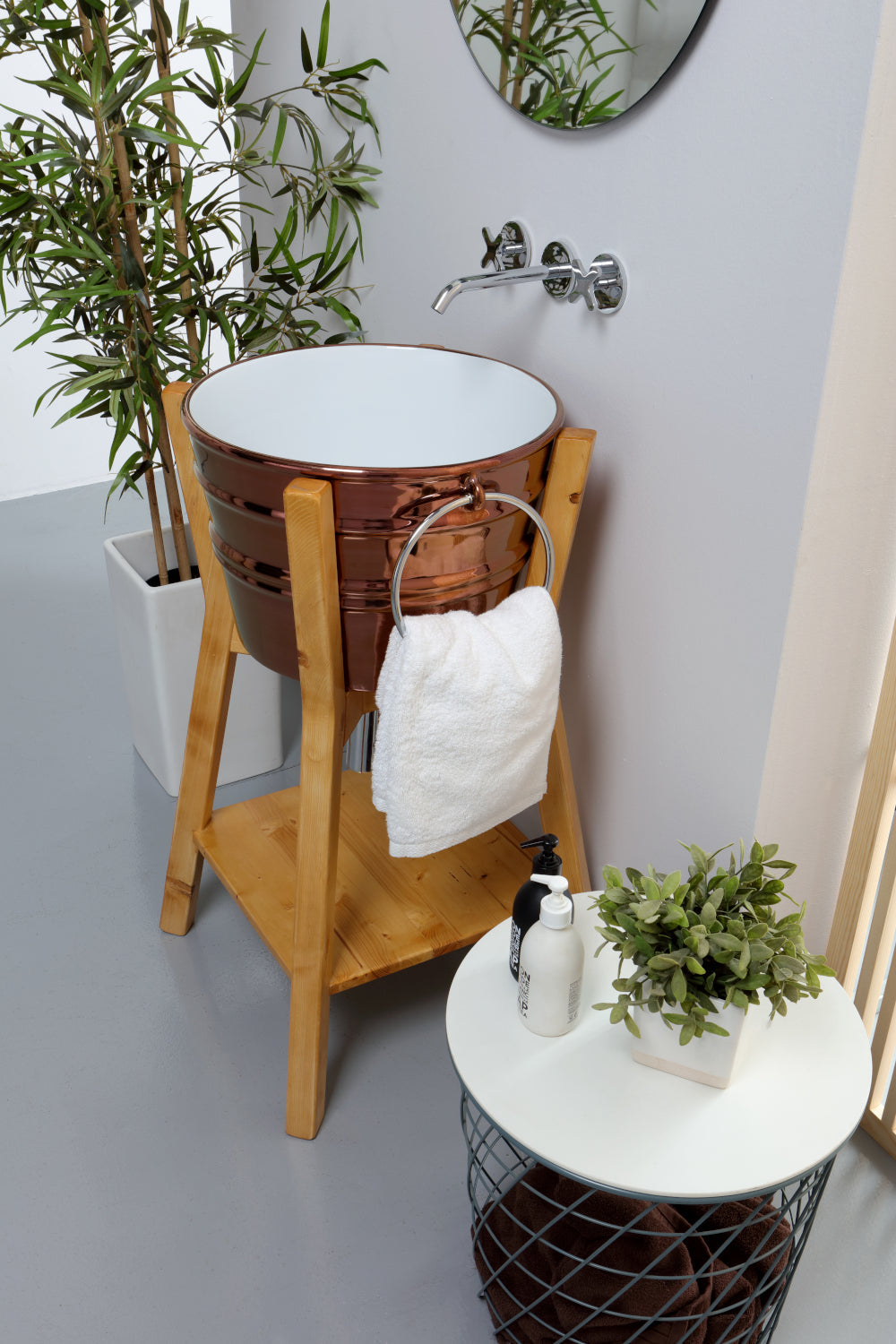 - Lavabo tondo 46 x 46 x h30 cm Bacile Rame Lucido con anelli cromo