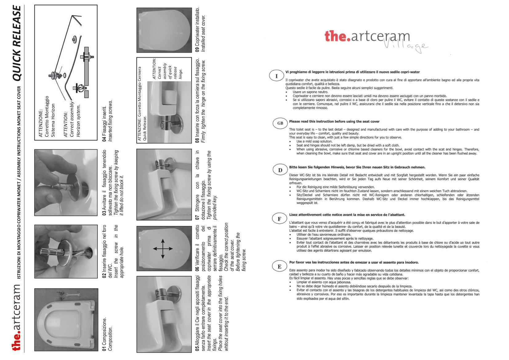 Vaso senza brida + bidet monoforo + coprivaso frizionato. Kit di fissaggi inclusi. Rubinetteria e accessori esclusi.