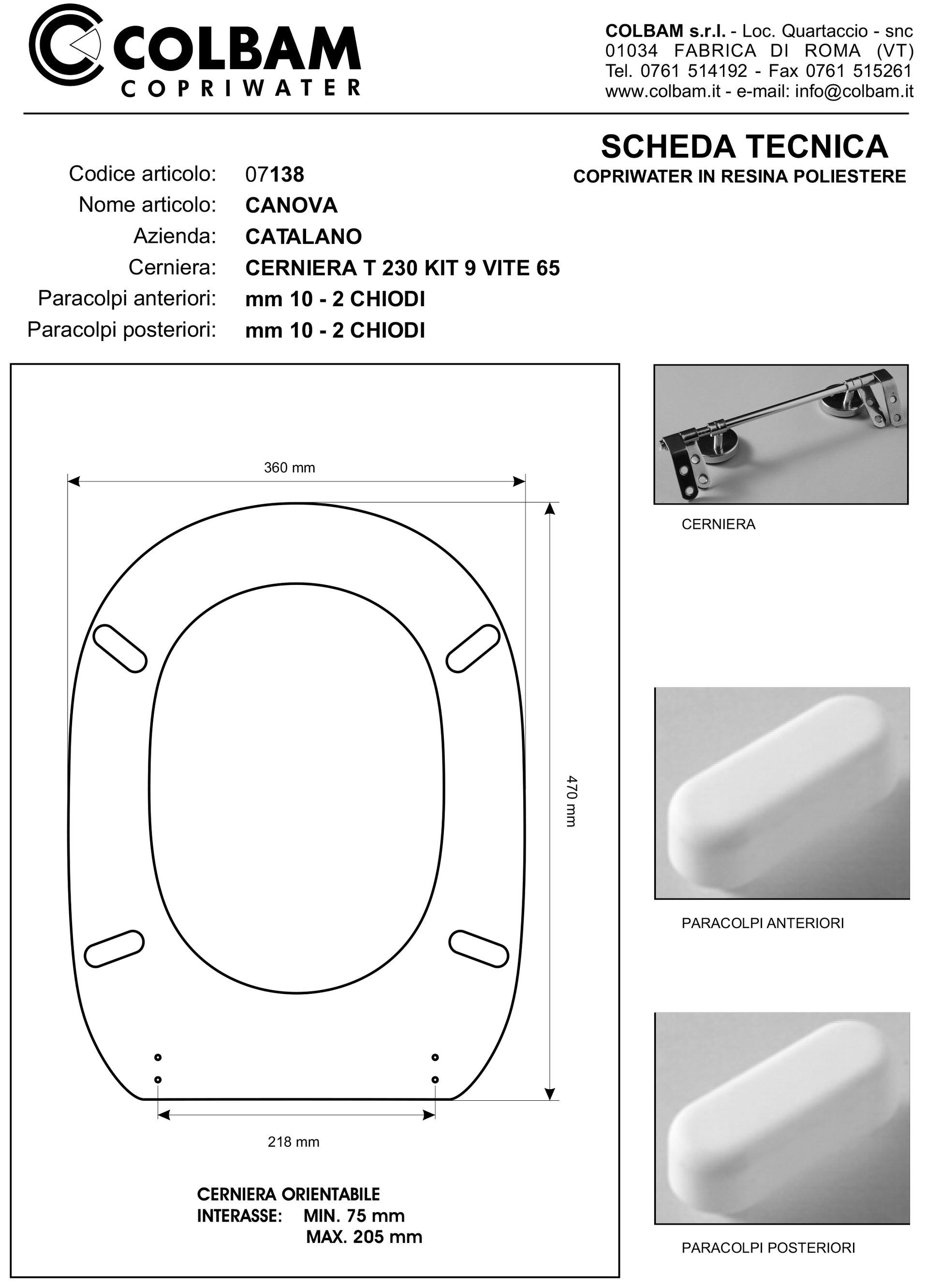 Copriwater compatibile con water serie Canova della ceramica Catalano