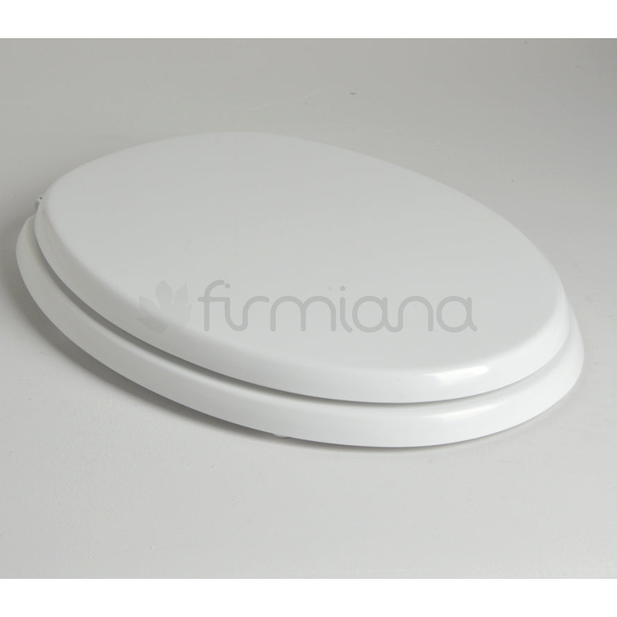 Copriwater bianco in resina poliestere per serie Donatello azienda Senesi, lunghezza 42.7 cm, larghezza 34.3 cm, interasse min. 8.3 cm - max 19.1 cm
