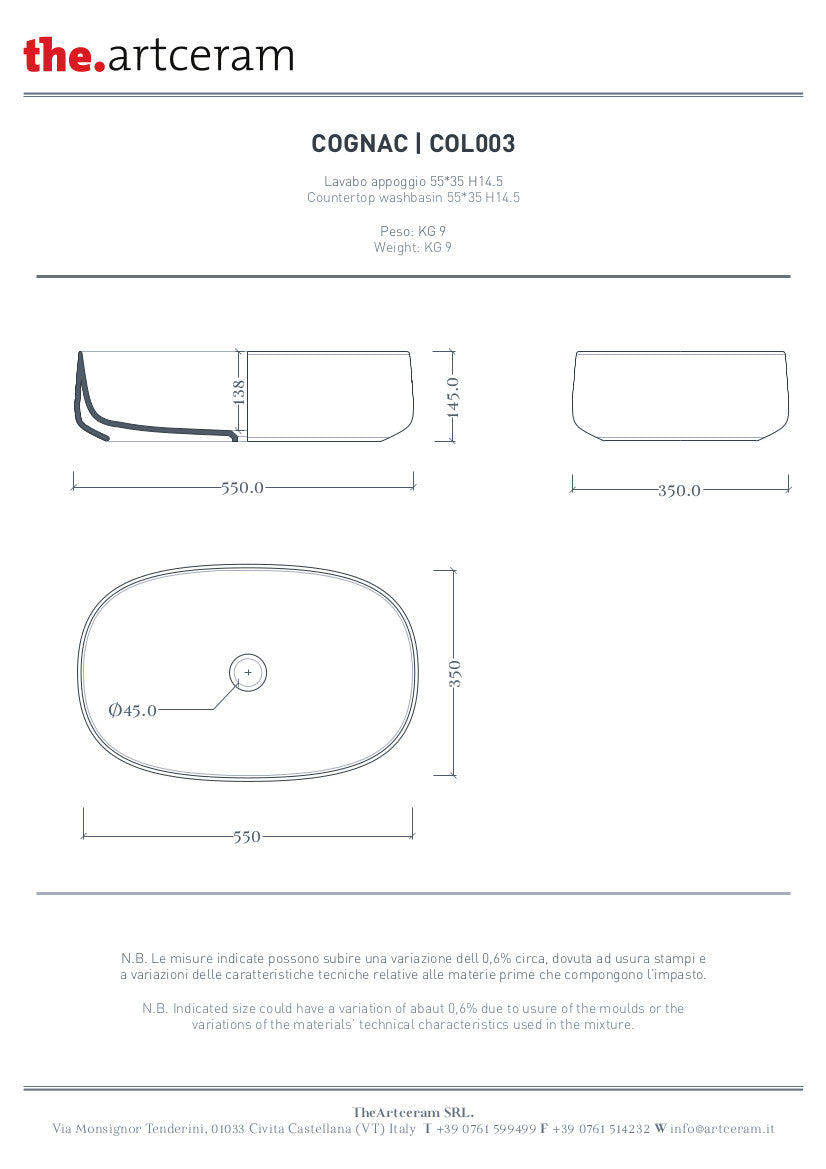 Lavabo Appoggio in ceramica della collezione COGNAC con dimensioni 68 X 35 con finiture marmoree