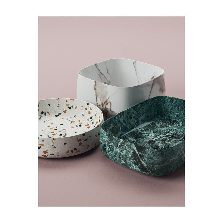 Lavabo Appoggio in ceramica della collezione COGNAC con dimensioni 68 X 35 con finiture marmoree