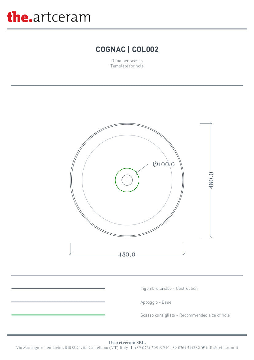Lavabo da appoggio in ceramica della collezione COGNAC con dimensioni Ø48, nelle finiture marmoree. Piletta in ceramica up&down inclusa nel prezzo