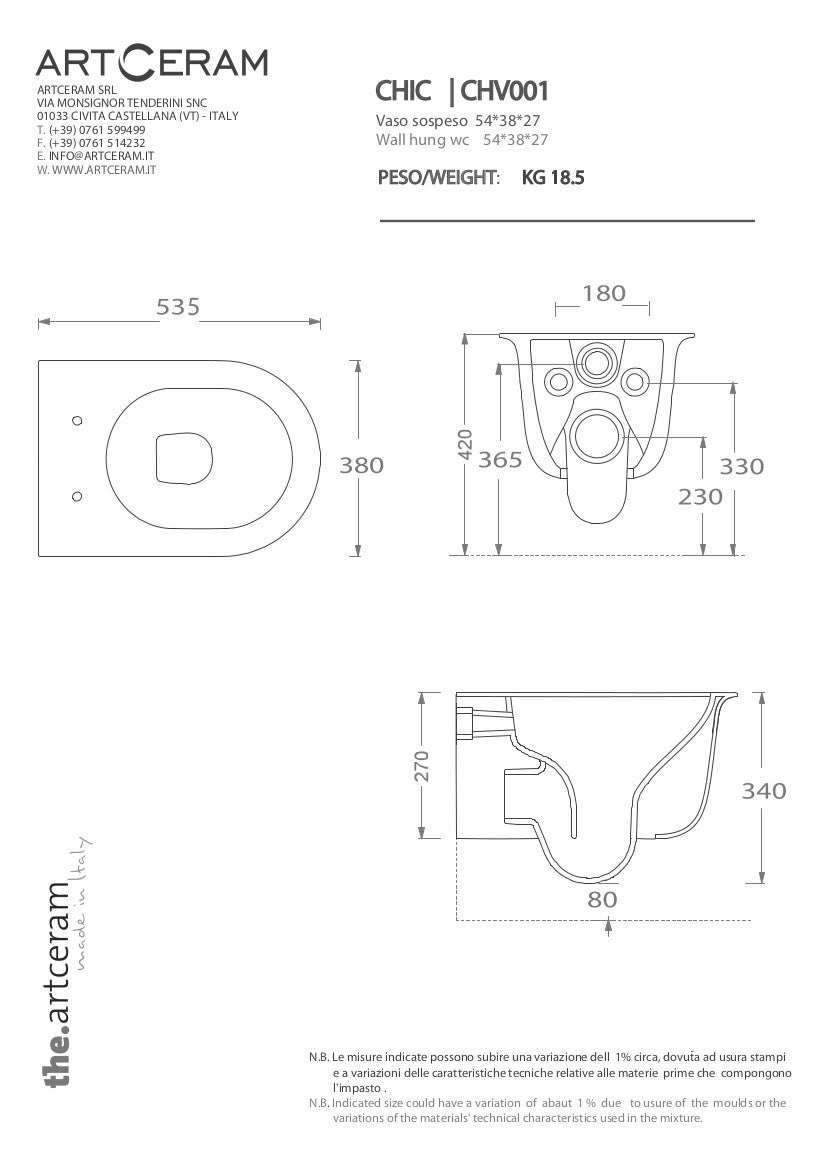 Sanitario sospeso Rimless in ceramica della collezione CHIC delle dimensioni di 38 x 53. Coprivaso escluso