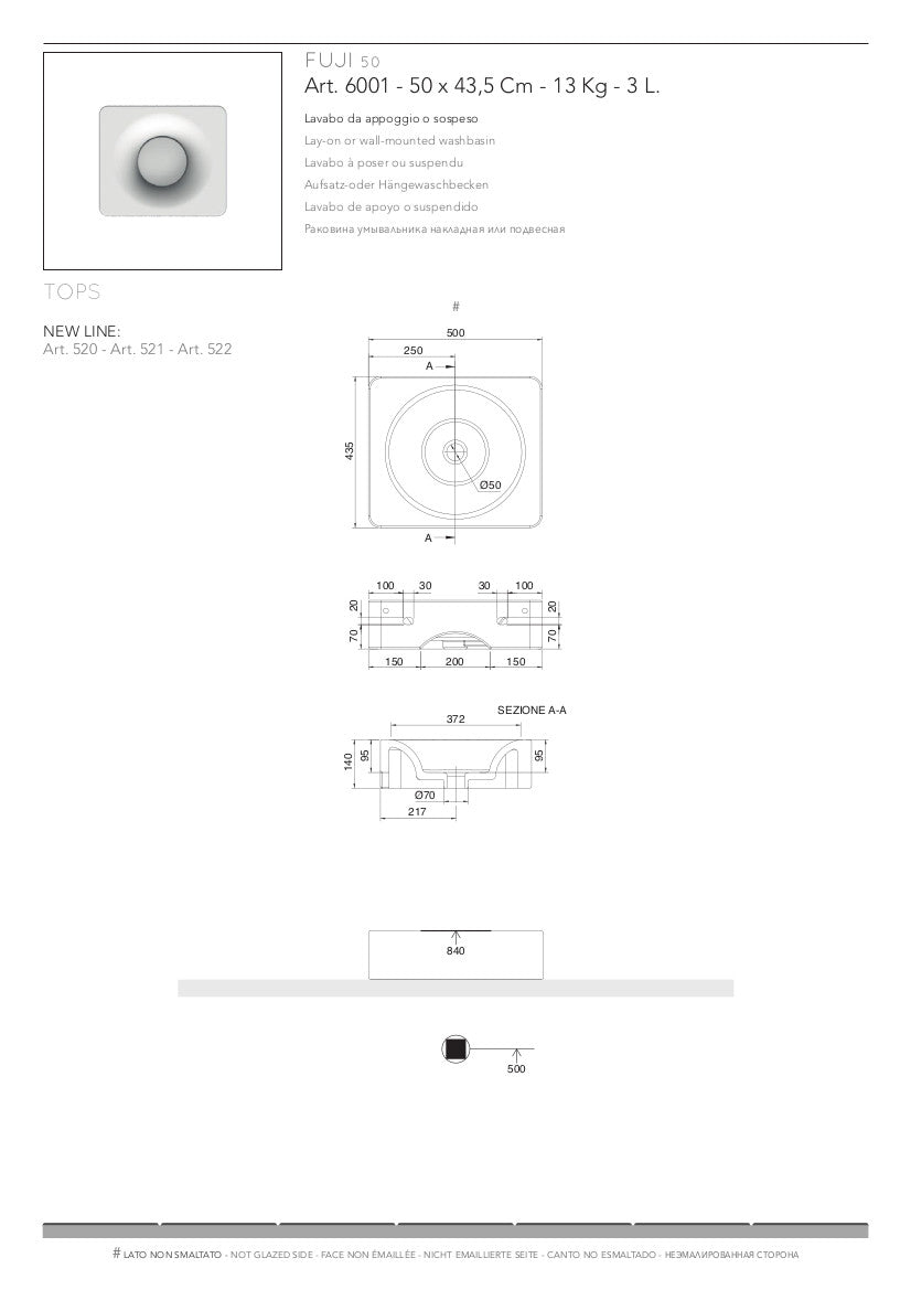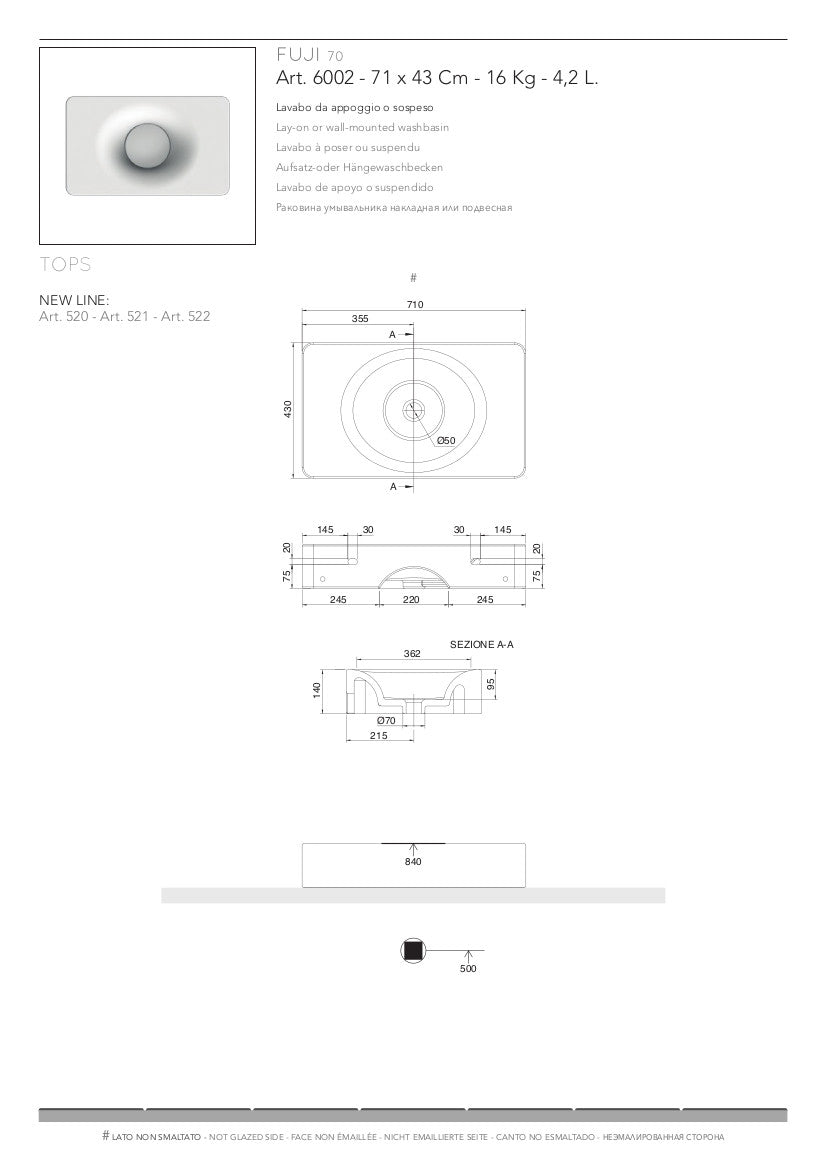 Lavabo appoggio/sospeso Fuji senza foro