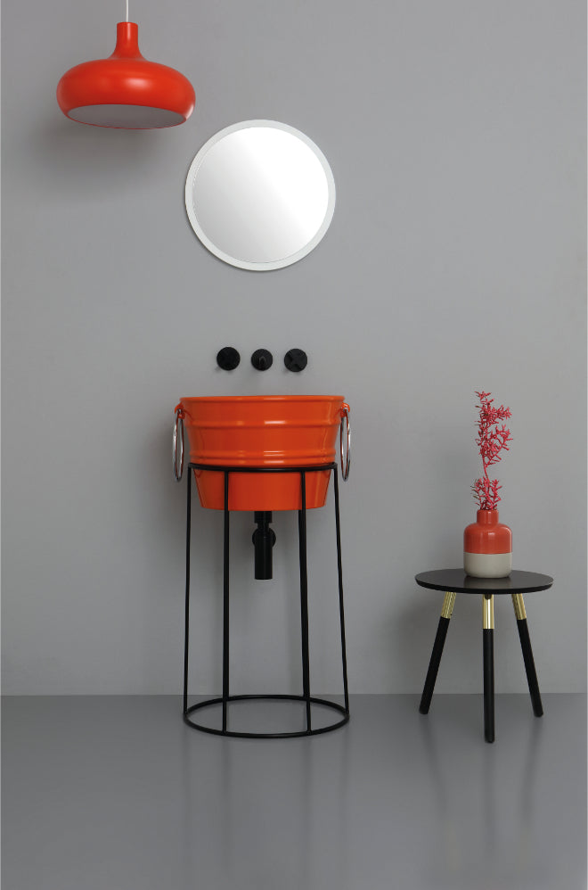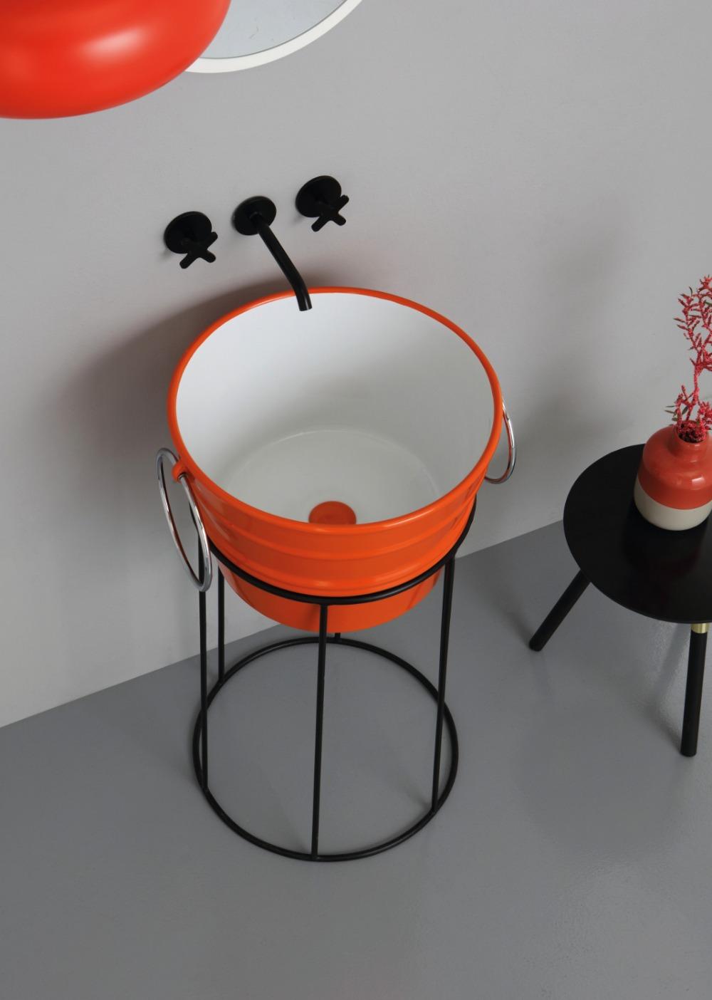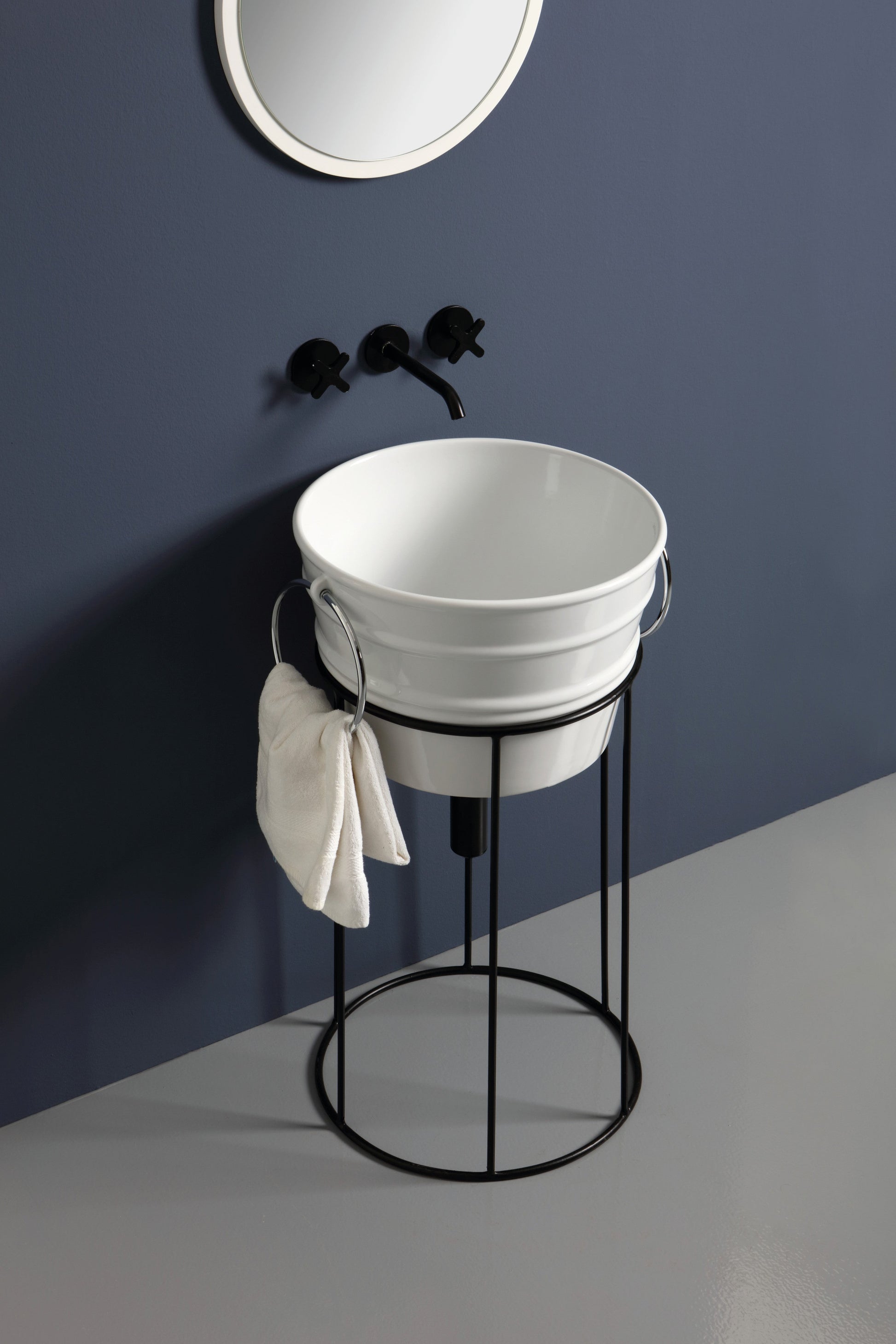 Structure de lavabo sur pied en métal, avec ou sans étagère, disponible en 2 finitions, pour lavabo Bacile.